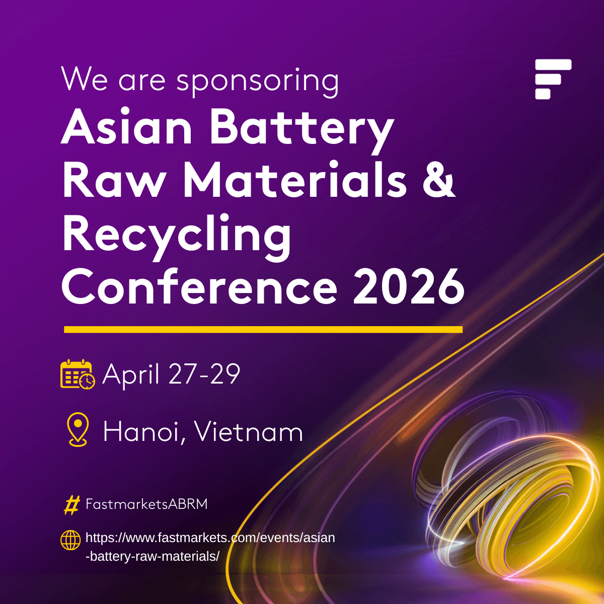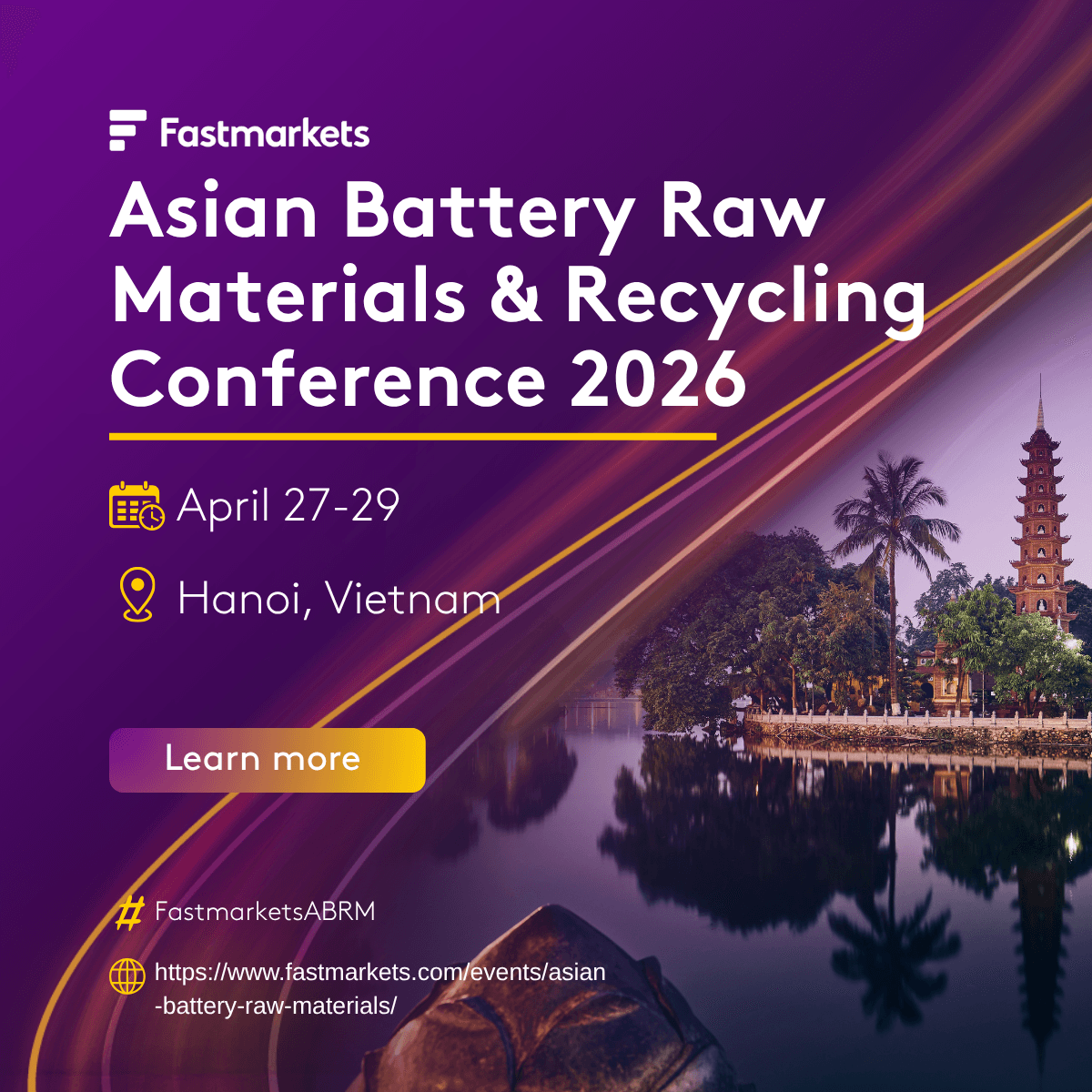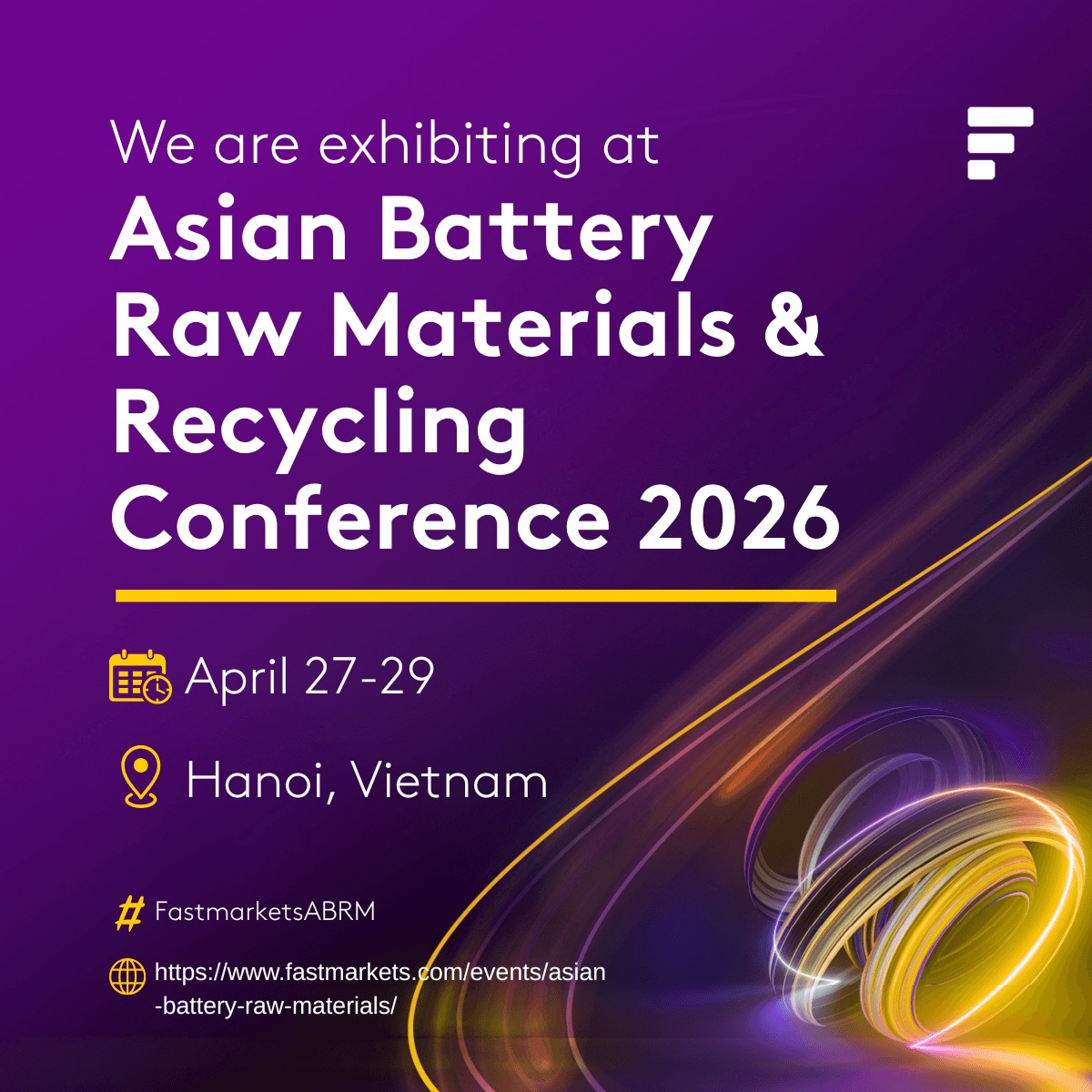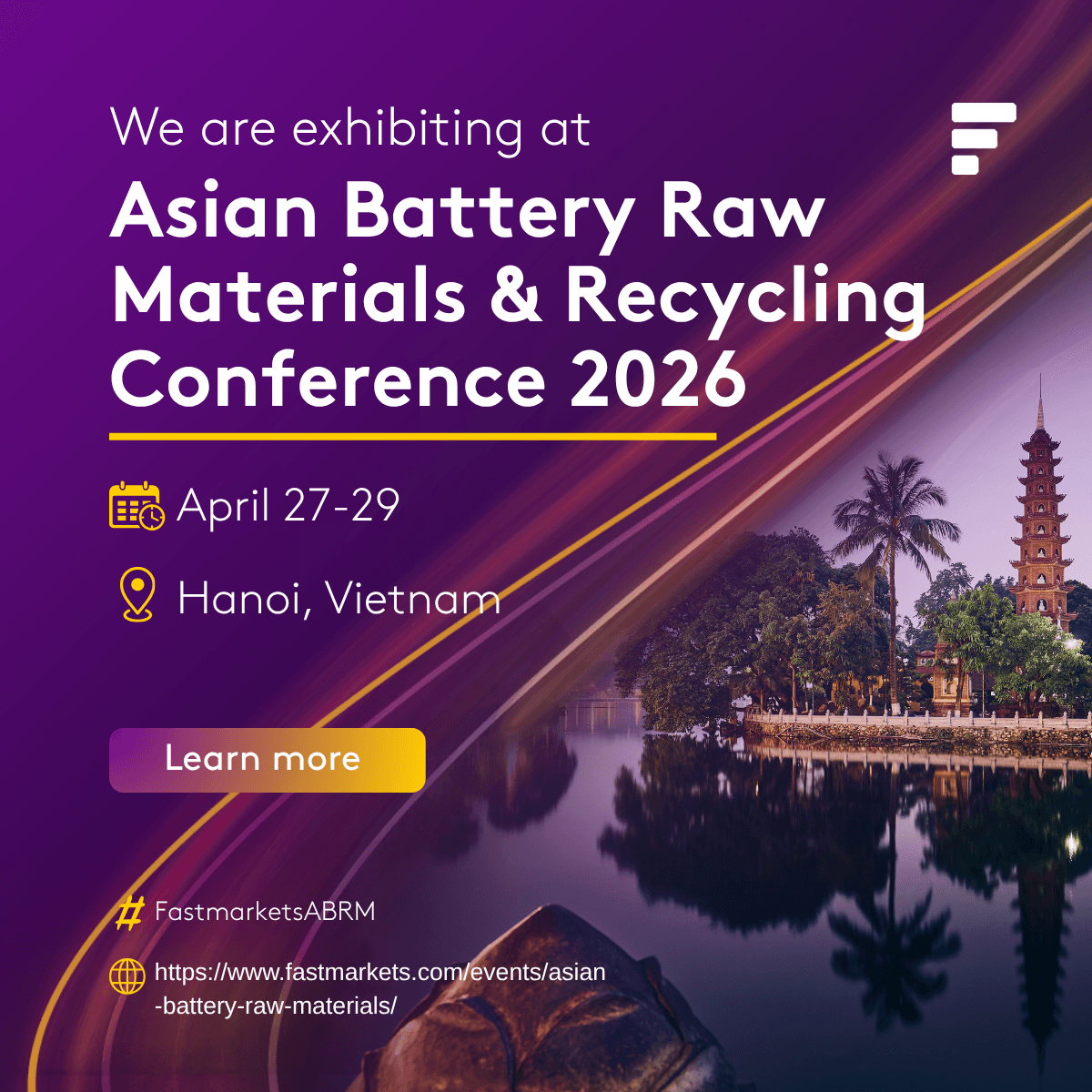 We’re heading to Hanoi! [Company Name] will be exhibiting at the Fastmarkets Asian Battery Raw Materials & Recycling Conference 2026. We look forward to seeing you there! #FastmarketsABRM