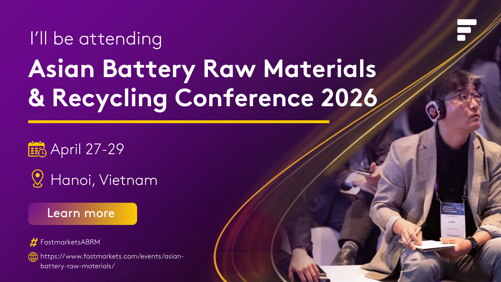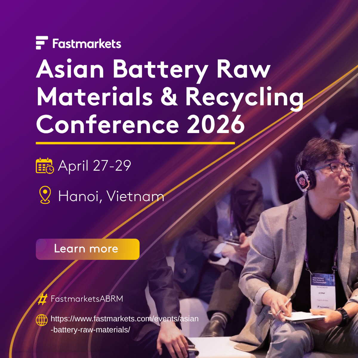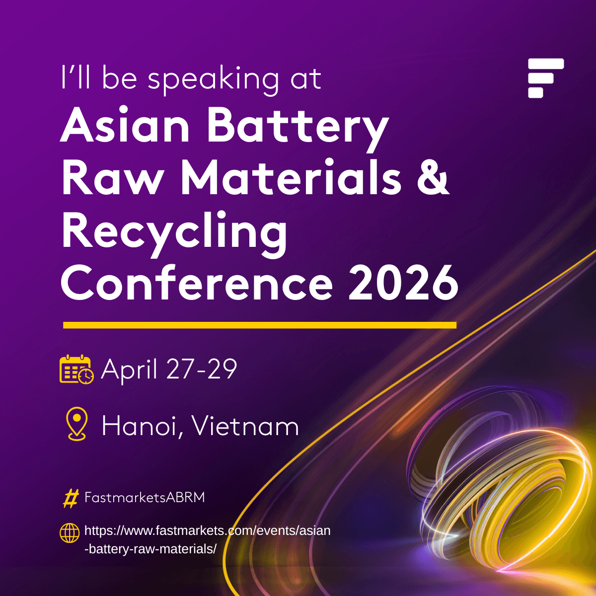 I’m excited to attend the Asian Battery Raw Materials & Recycling Conference 2026 event! Catch me in Hanoi this April. #FastmarketsABRM