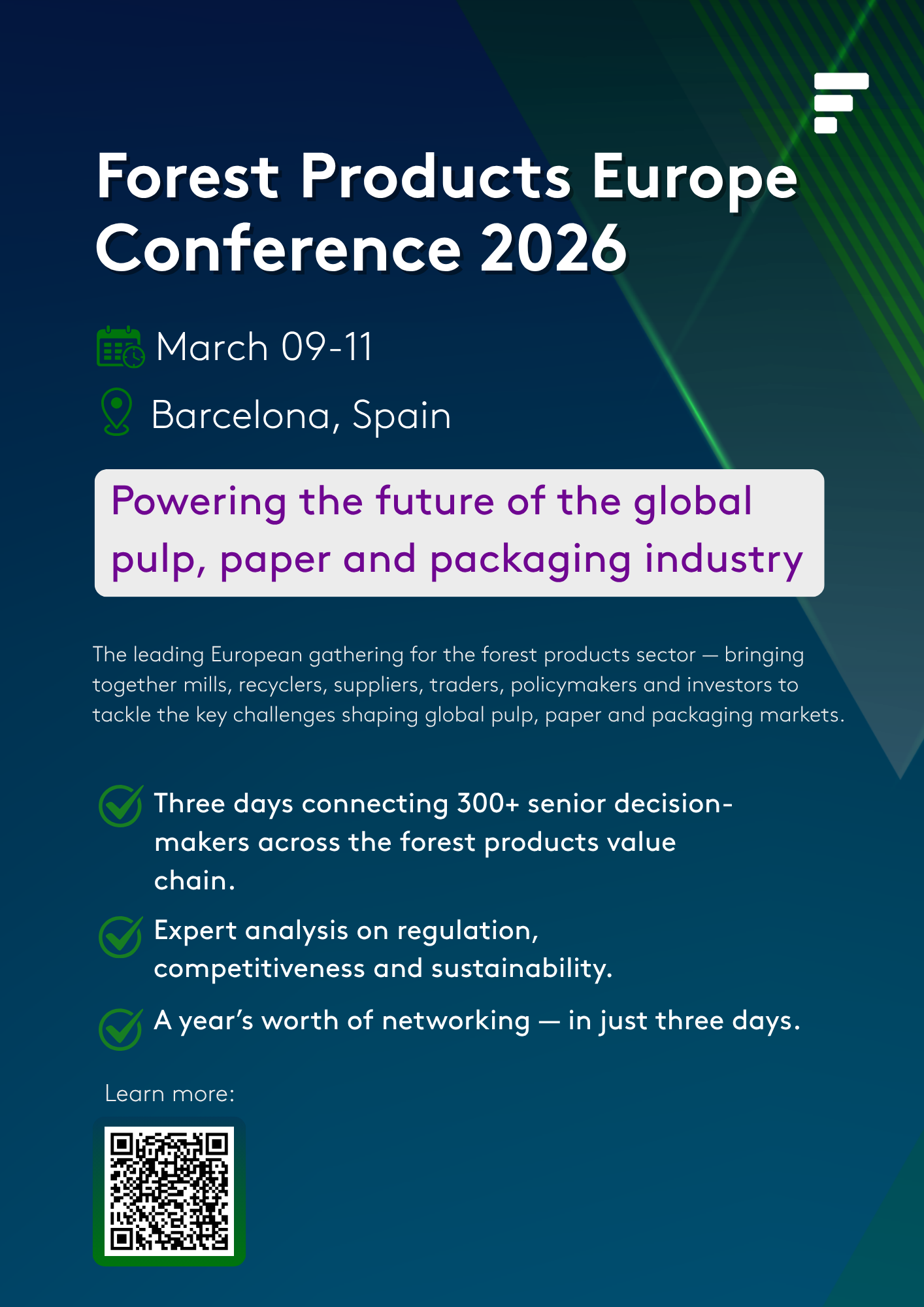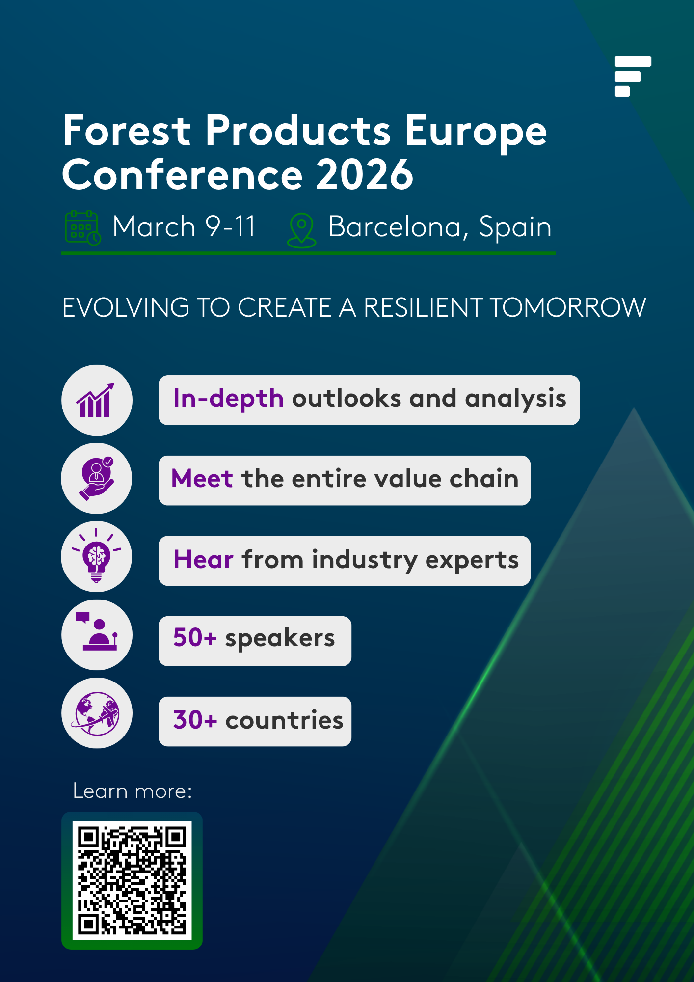 We’re excited to be a sponsor of the Fastmarkets Forest Products Europe Conference 2026 this March in Barcelona! Looking forward to connecting with industry leaders. #FastmarketsFPEurope