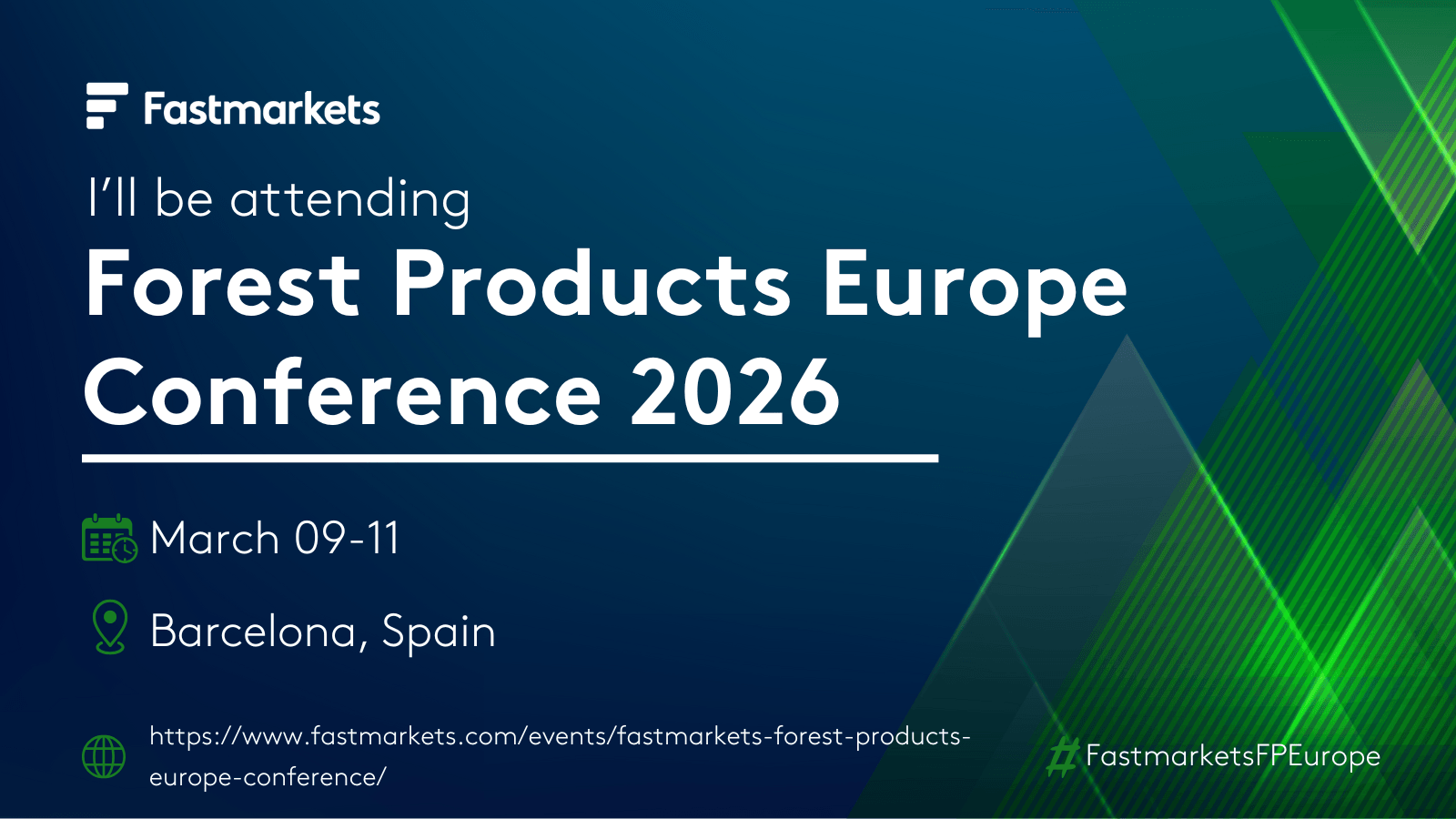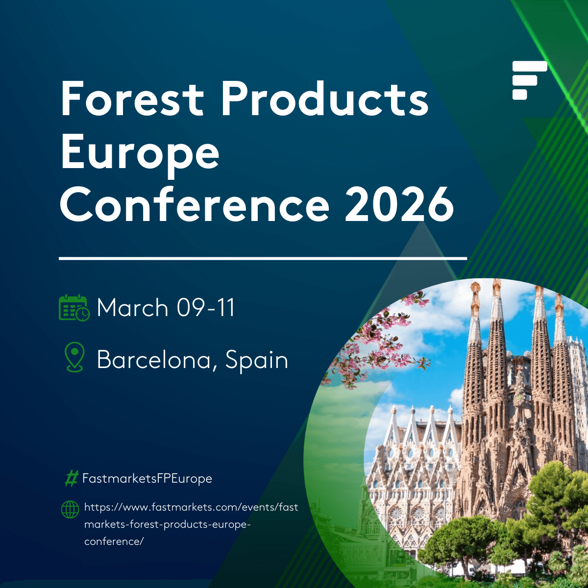 We’re heading to Barcelona! [Company Name] will be exhibiting at the Fastmarkets Forest Products Europe Conference 2026. We look forward to seeing you there! #FastmarketsFPEurope