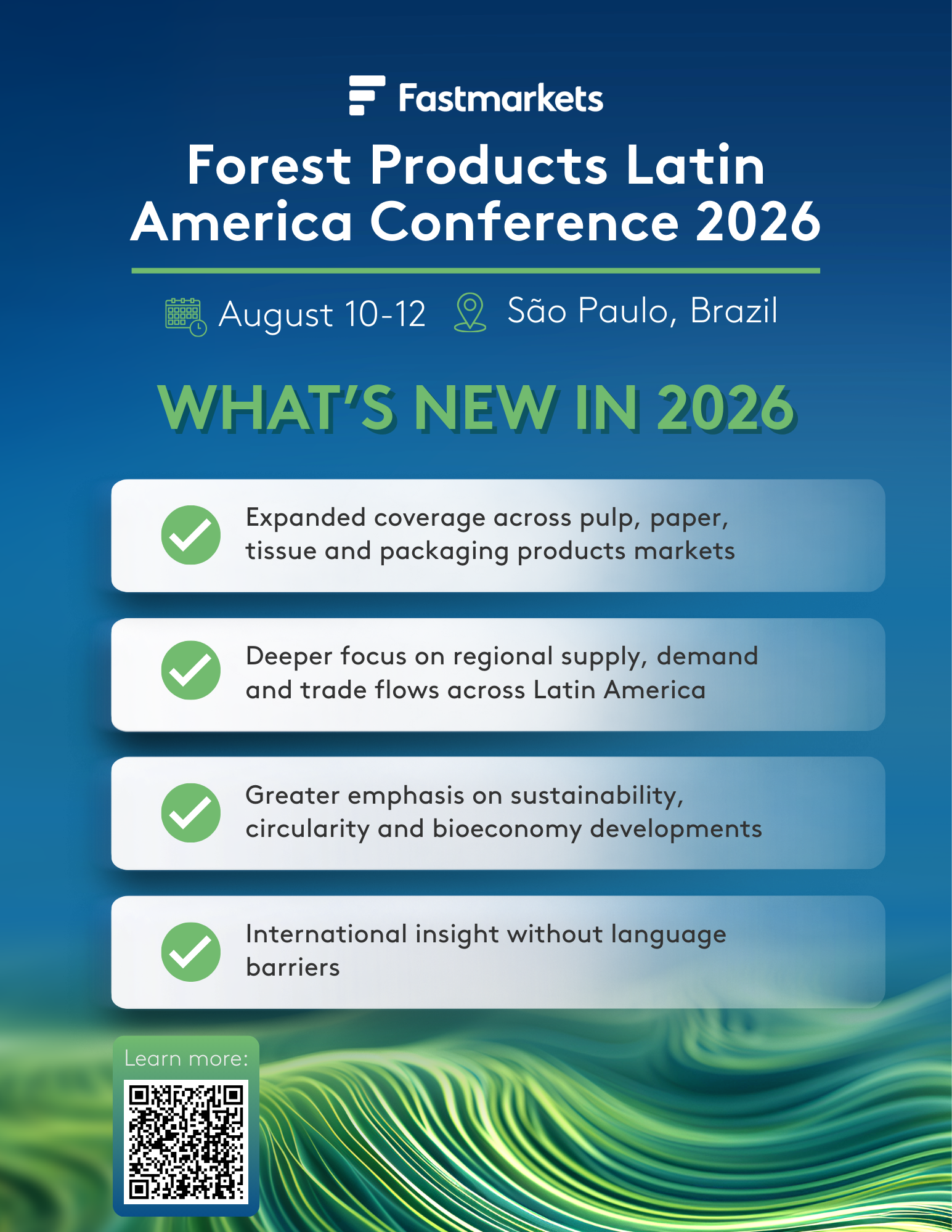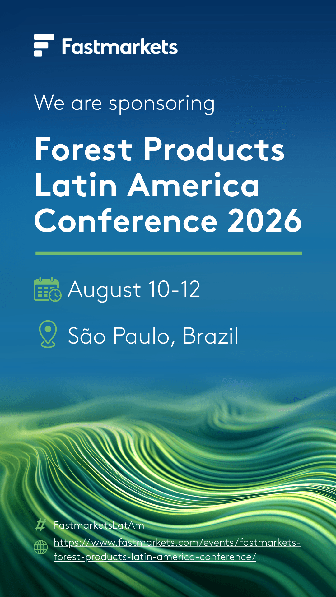 We’re excited to be a sponsor of the Fastmarkets Forest Products Latin America Conference 2026 this August in São Paulo! Looking forward to connecting with industry leaders. #FastmarketsLatAm