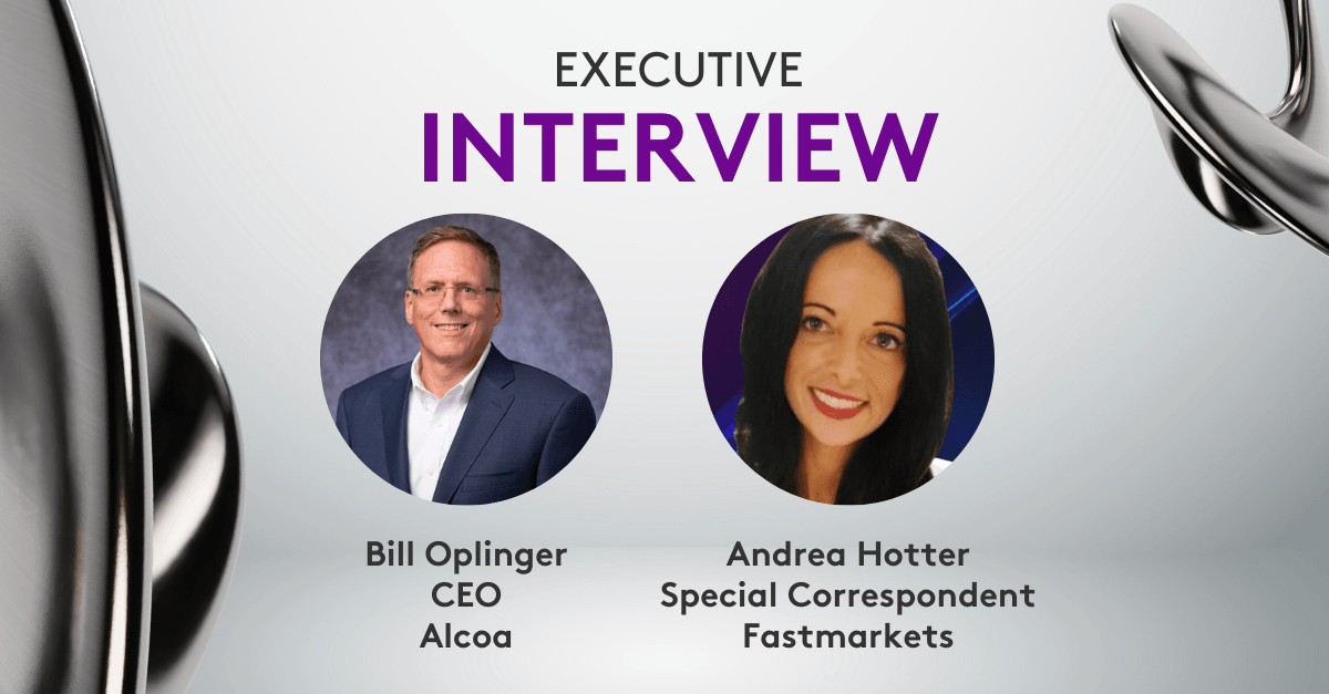 We’re pleased to welcome William Oplinger, CEO of Alcoa, to Fastmarkets International Aluminium 2025 for an exclusive Executive Interview with Andrea Hotter, Special Correspondent at Fastmarkets.